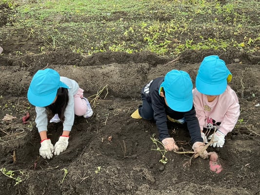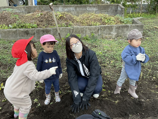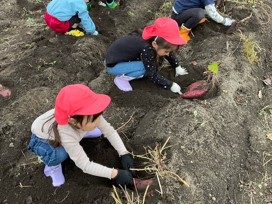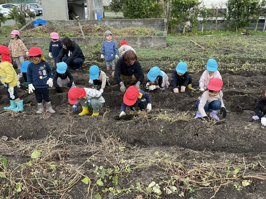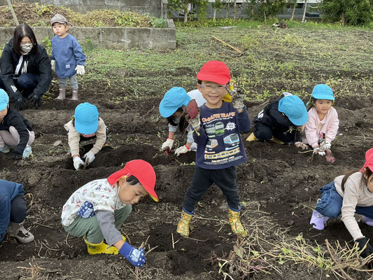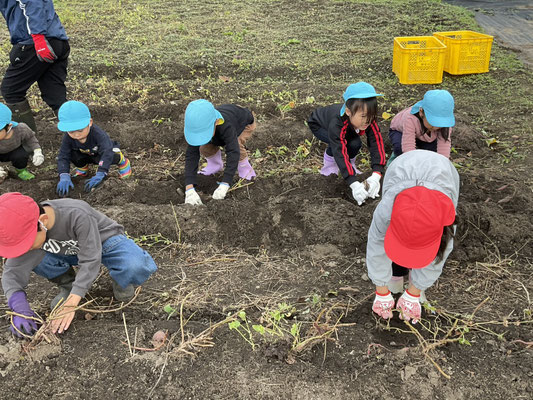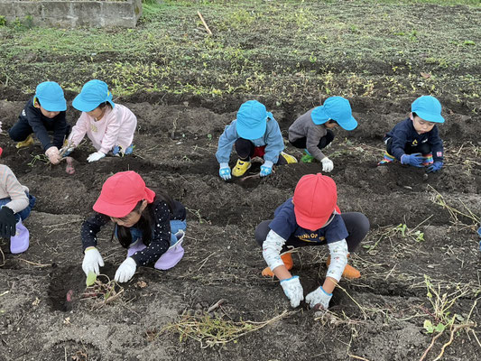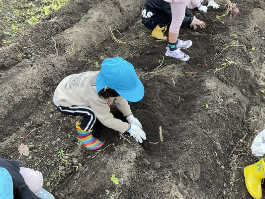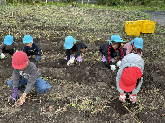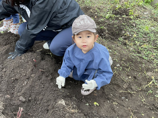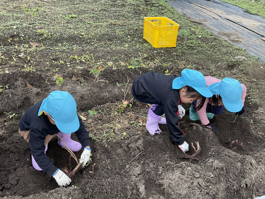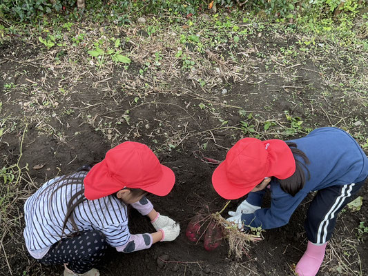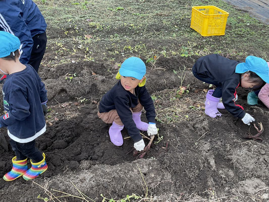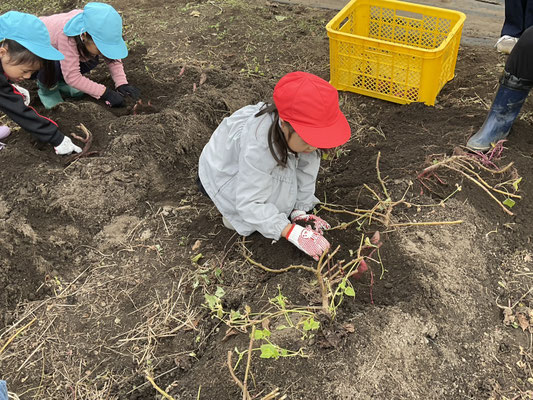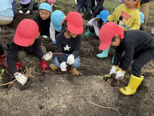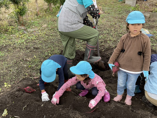 子ども達は、一生懸命土をほってお芋を探し、大きな芋が取れると嬉しそうに見せてくれました!