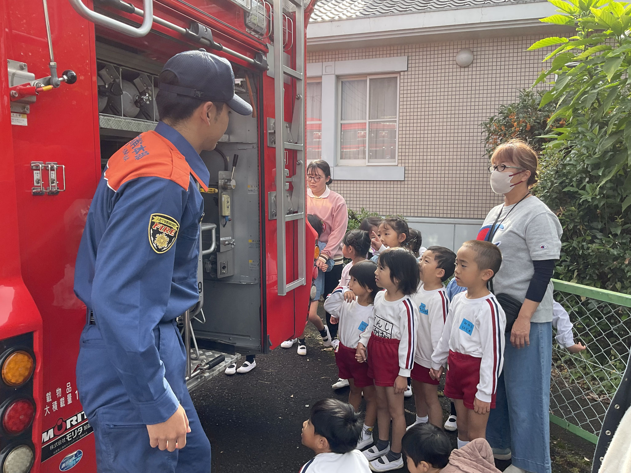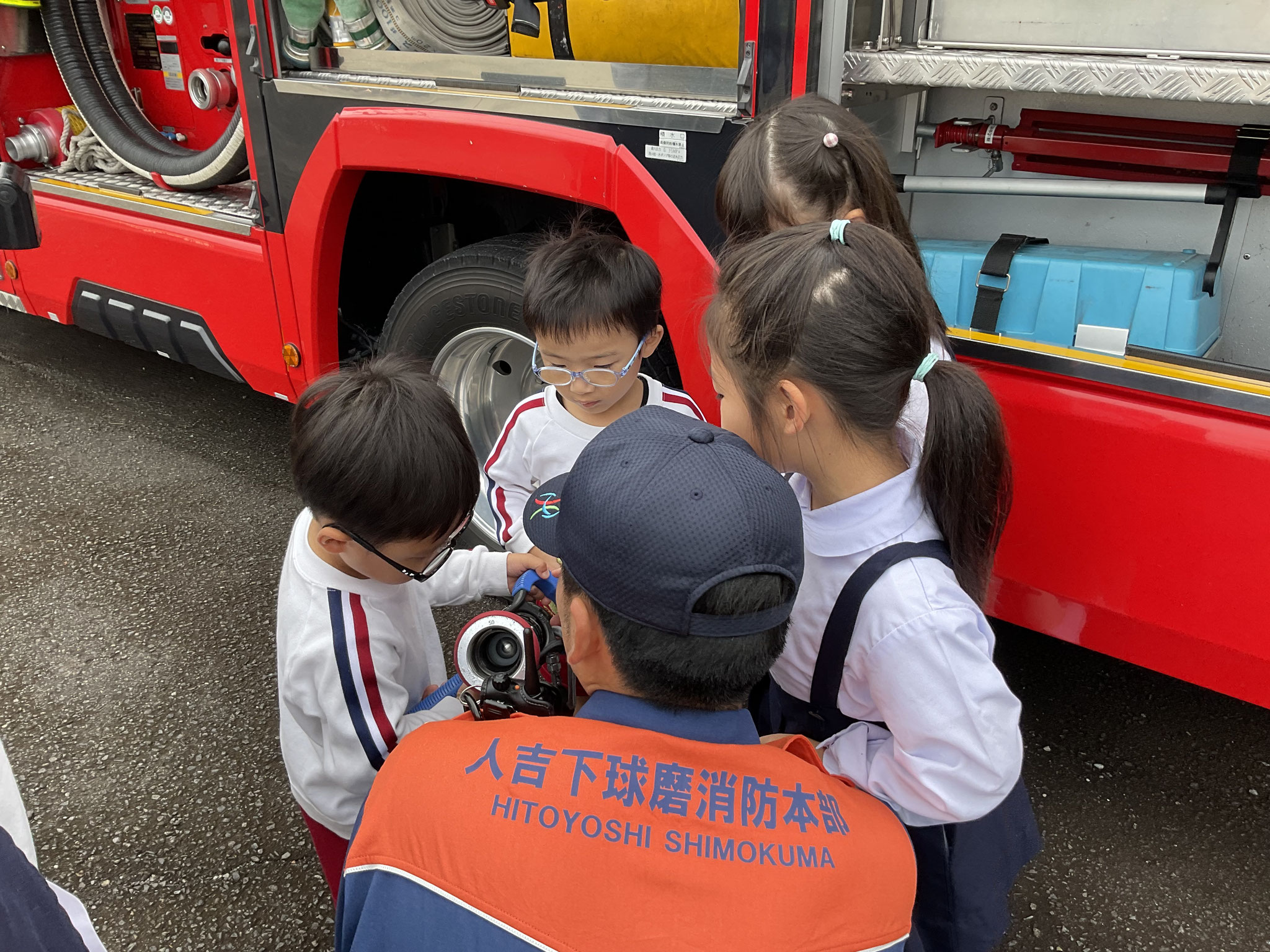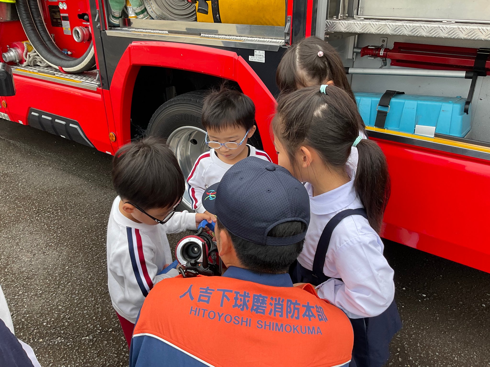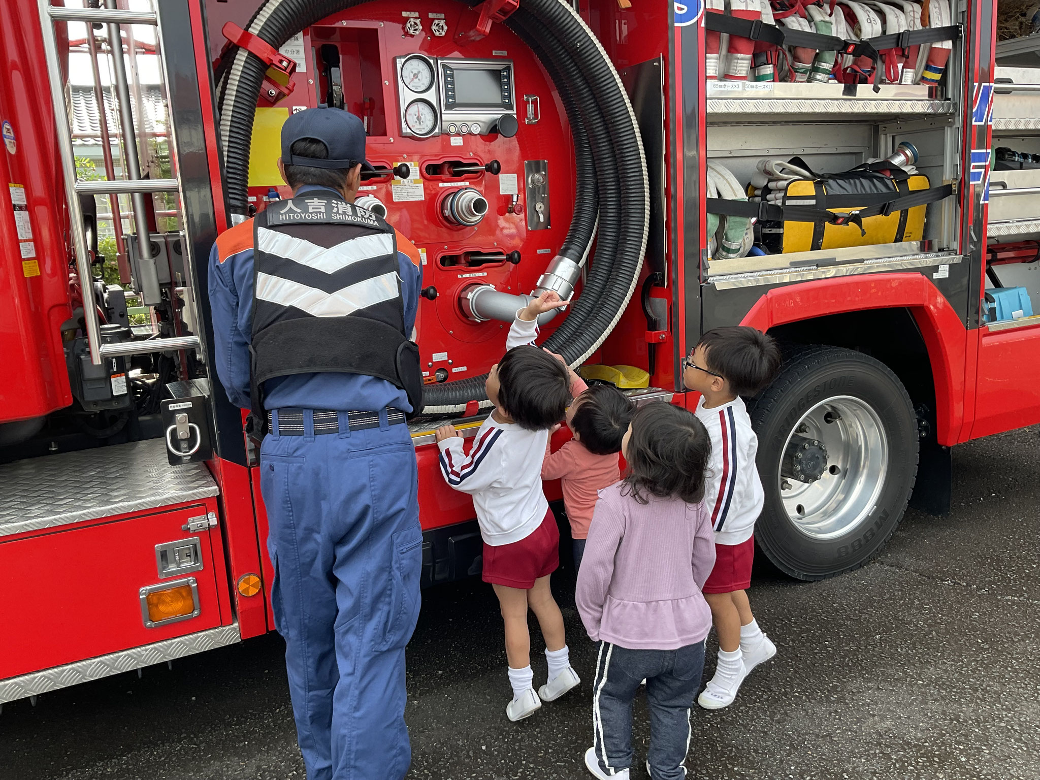 あるお友だちは、消防署の方を独占して質問攻めでした。子どもたちの大好きな🚒を見せていただき、ありがとうございます。