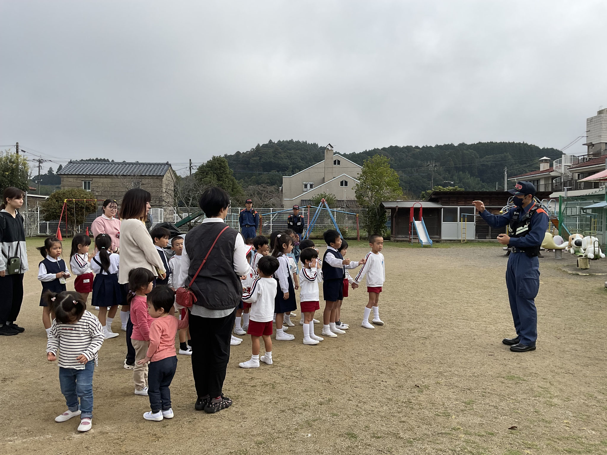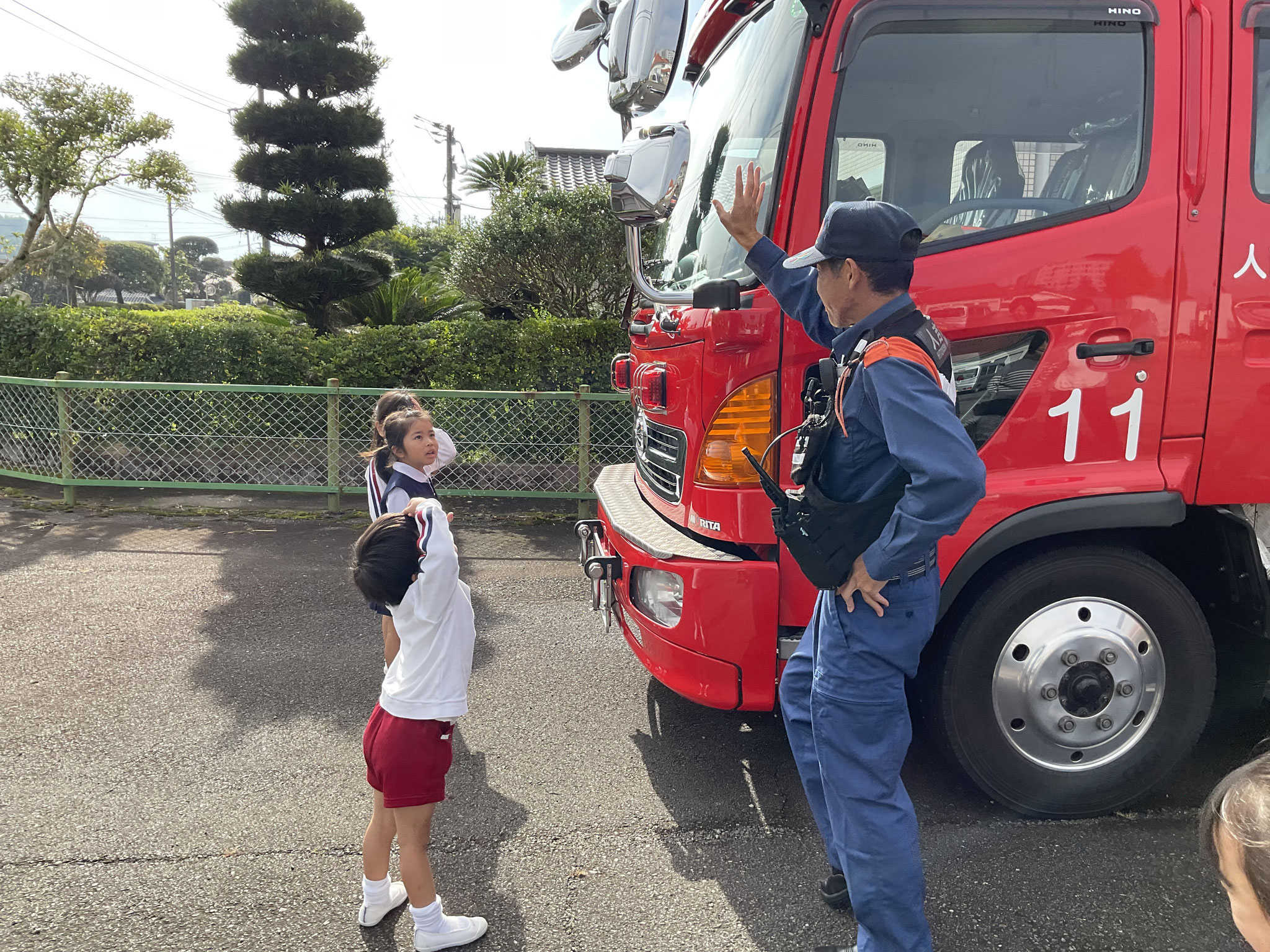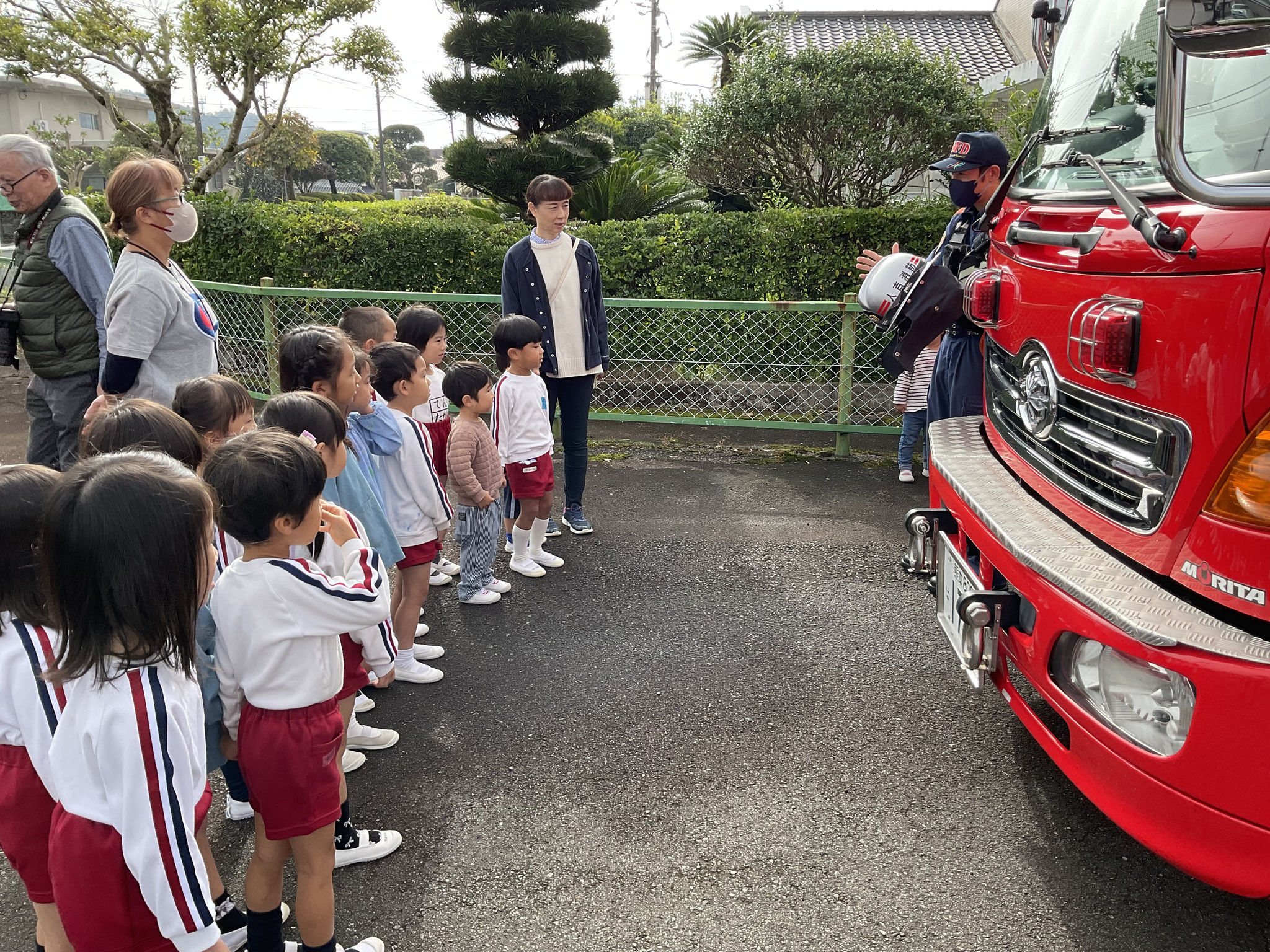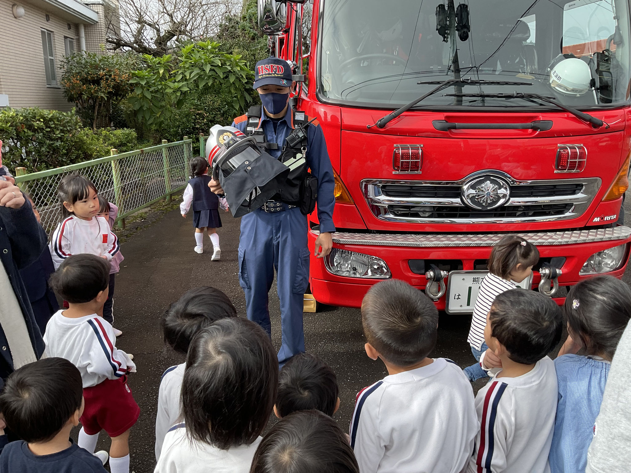 あるお友だちは、消防署の方を独占して質問攻めでした。子どもたちの大好きな🚒を見せていただき、ありがとうございます。