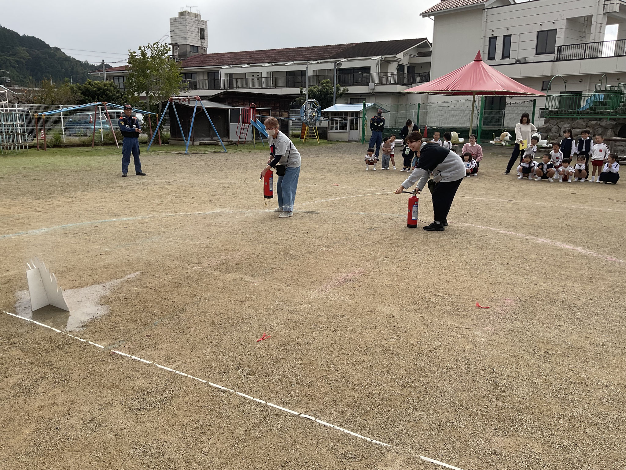 ながら、逃げていました。訓練の意味を理解して参加しているのがよぉ~く伝わりました(*^_^*)また、消防署の方がマッチを