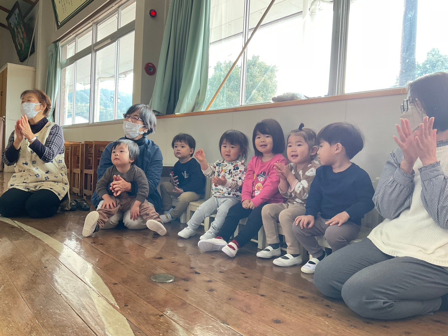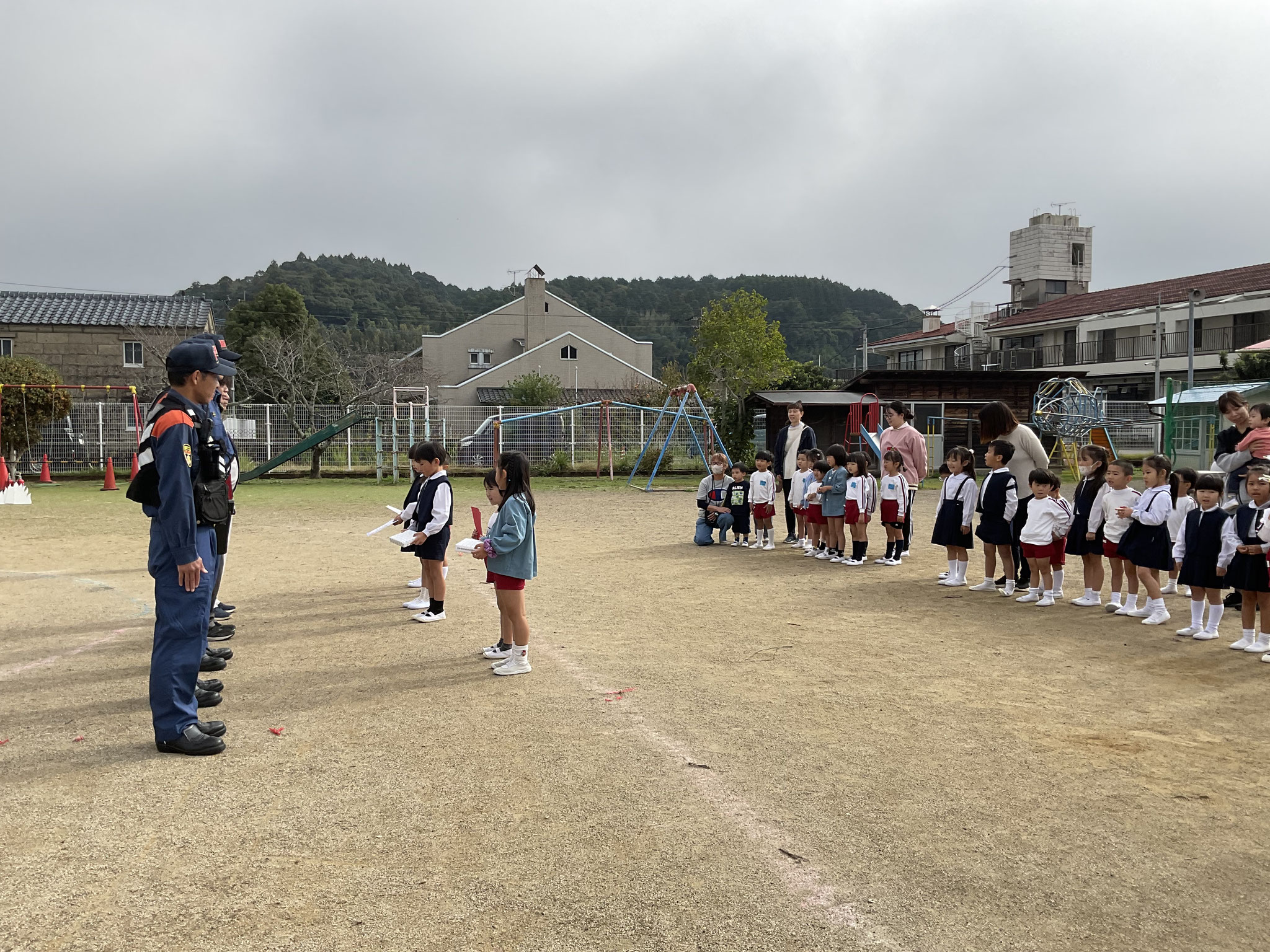 11月6日は、避難訓練でした。もしも火事が起きた時の為の訓練を行いました。子ども達もハンカチで口や鼻を押さえ