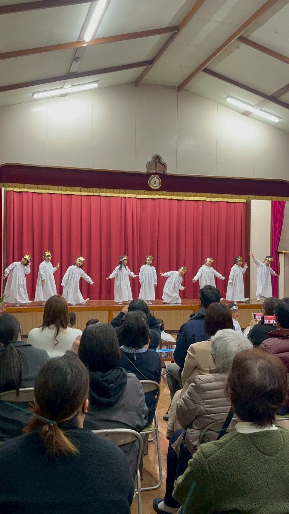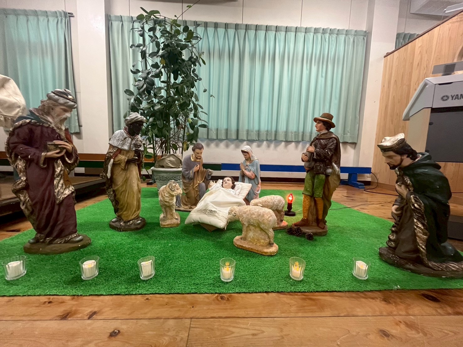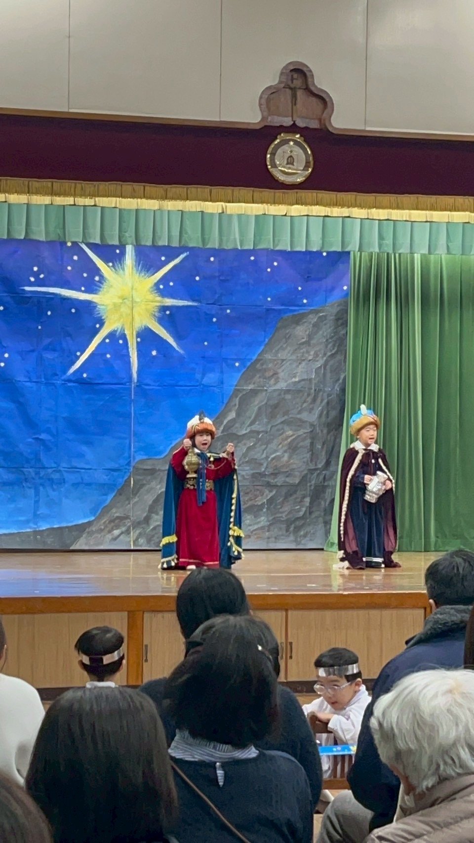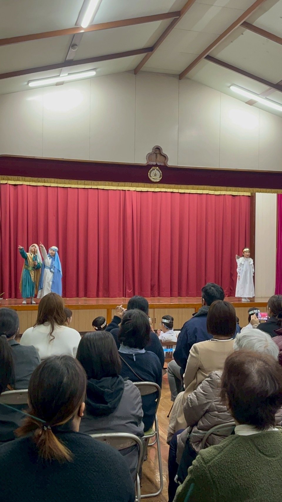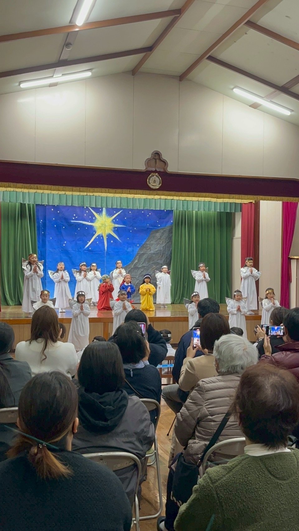 12月9日火曜日、聖劇を行いました。毎日少しずつ練習を重ね、本番ではたくさんのお家の方や神父さま、教会の方々の前で堂々とした姿を魅せてくれました。年長組は自分で選んだ役に責任をもって演じる頼もしさや美しさがありました。年中組はそれぞれ羊飼いと天使になり、元気な歌声を響かせてくれました。年少、年少少組は線上歩行やフィナーレで一生懸命かつ可愛らしい姿を見せてくれました。イエスさまがお生まれになる喜びが周りの方々や神さまに伝わっていますように。