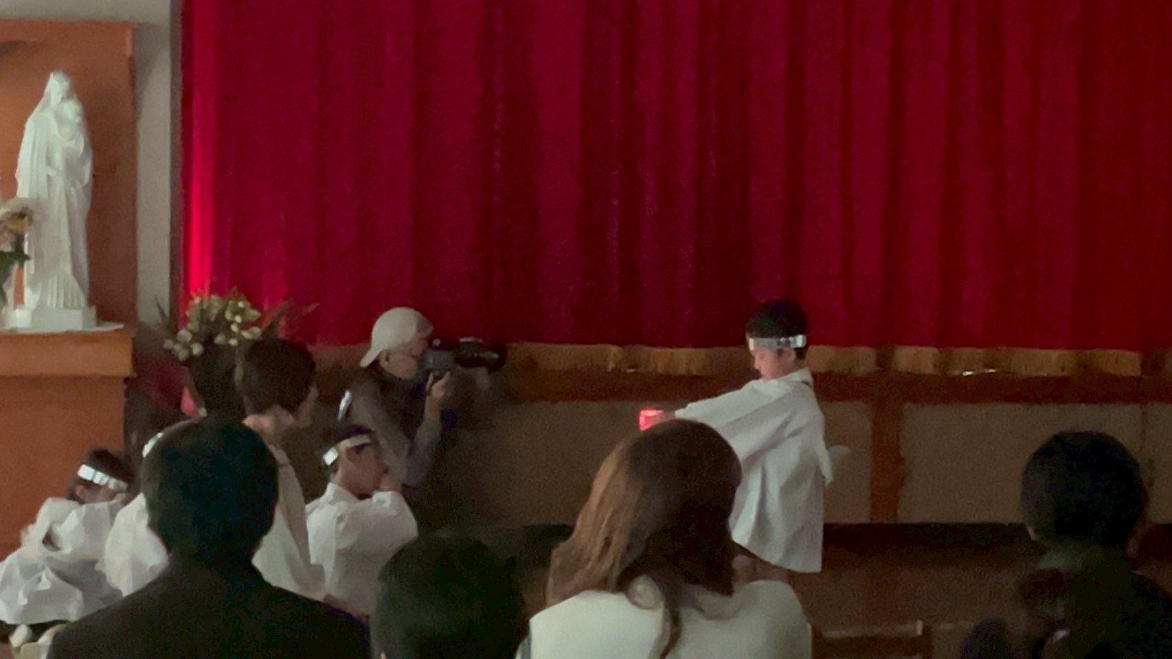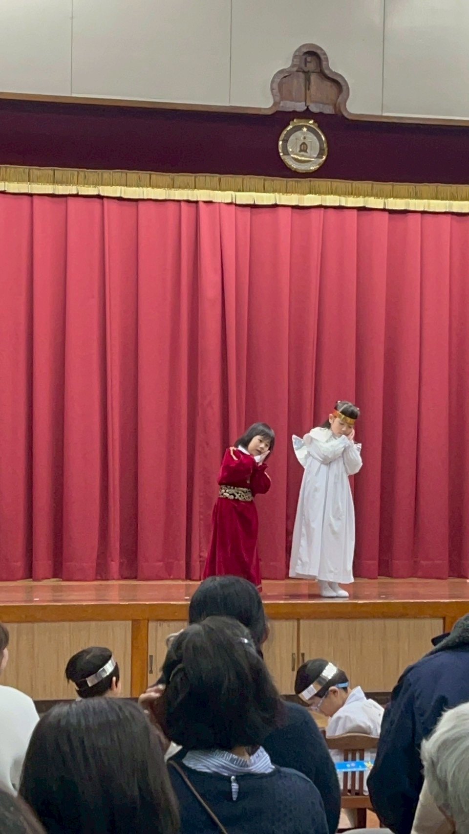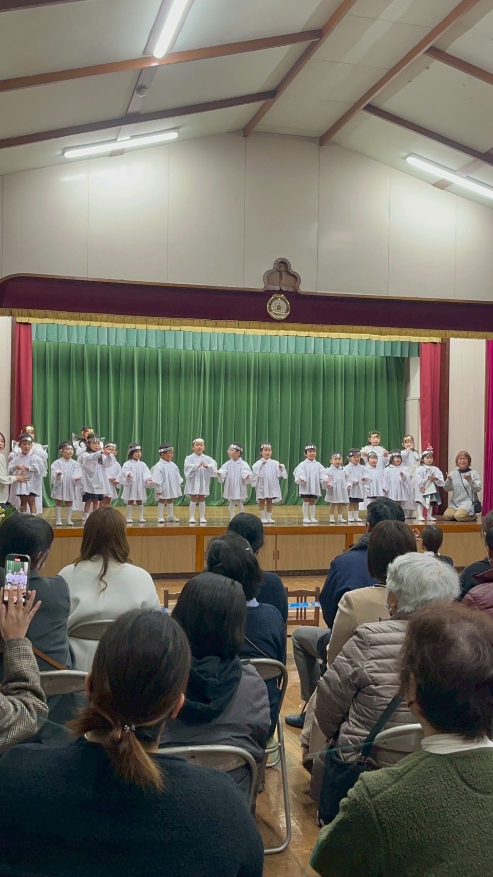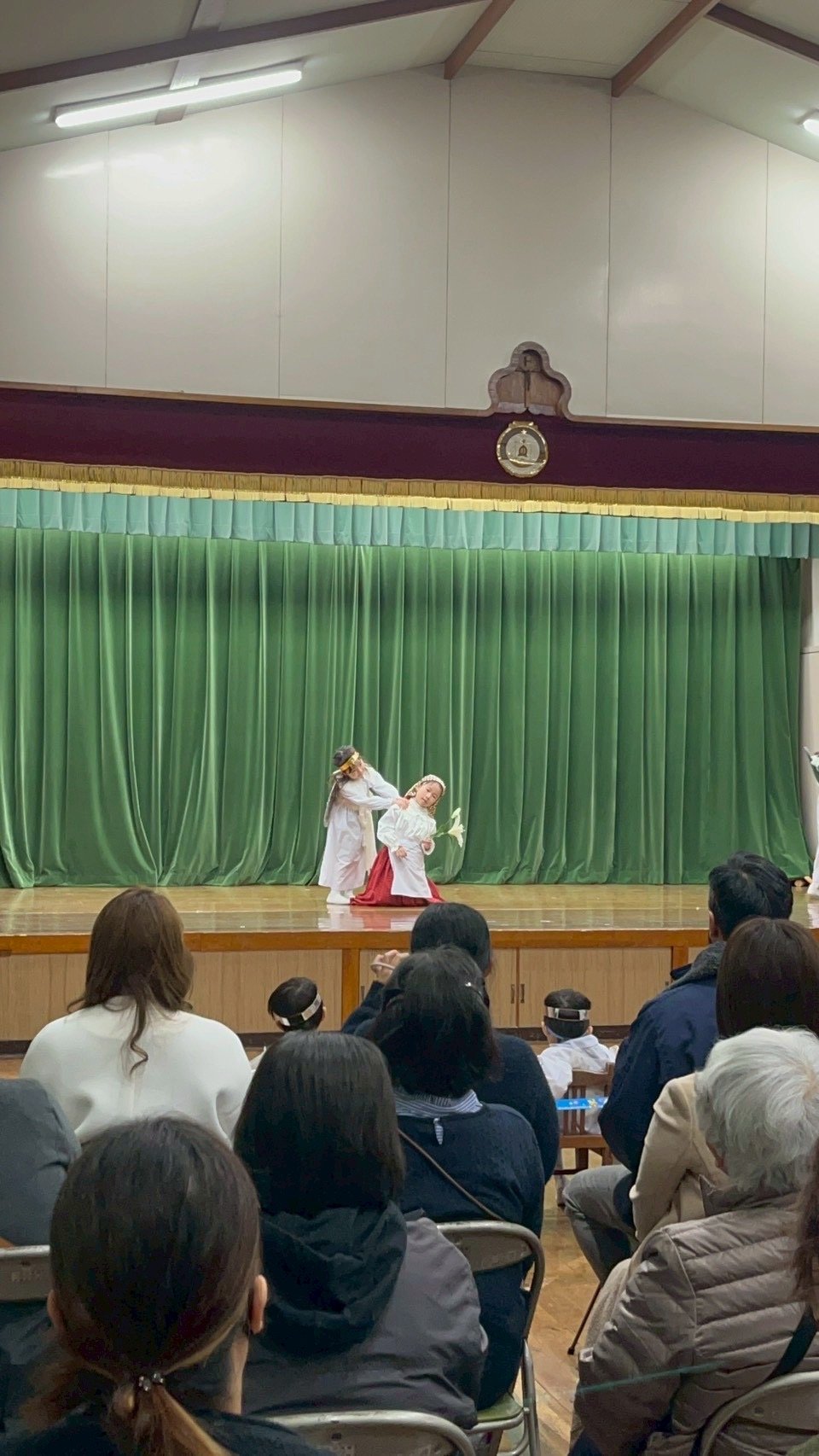 12月9日火曜日、聖劇を行いました。毎日少しずつ練習を重ね、本番ではたくさんのお家の方や神父さま、教会の方々の前で堂々とした姿を魅せてくれました。年長組は自分で選んだ役に責任をもって演じる頼もしさや美しさがありました。年中組はそれぞれ羊飼いと天使になり、元気な歌声を響かせてくれました。年少、年少少組は線上歩行やフィナーレで一生懸命かつ可愛らしい姿を見せてくれました。イエスさまがお生まれになる喜びが周りの方々や神さまに伝わっていますように。