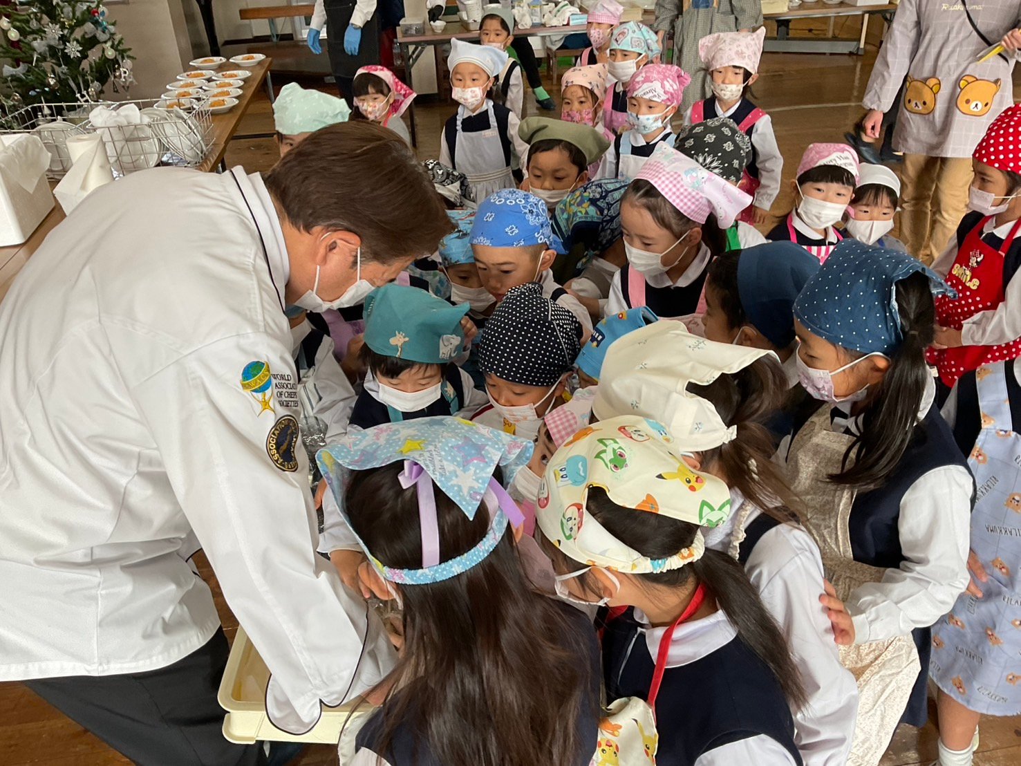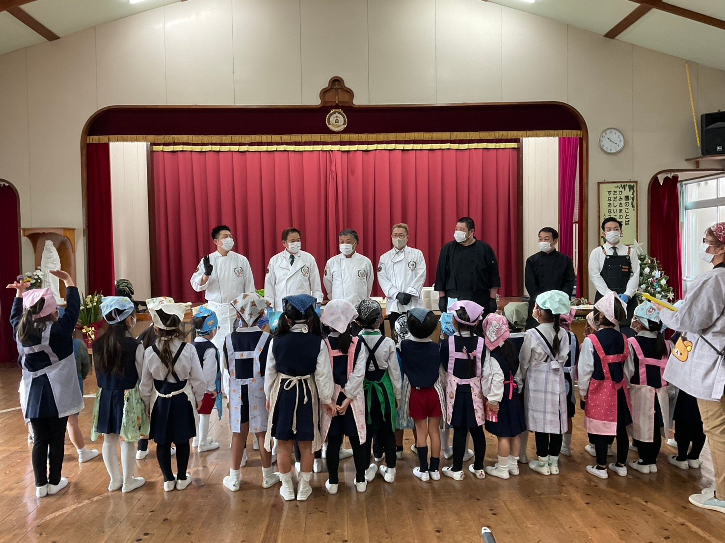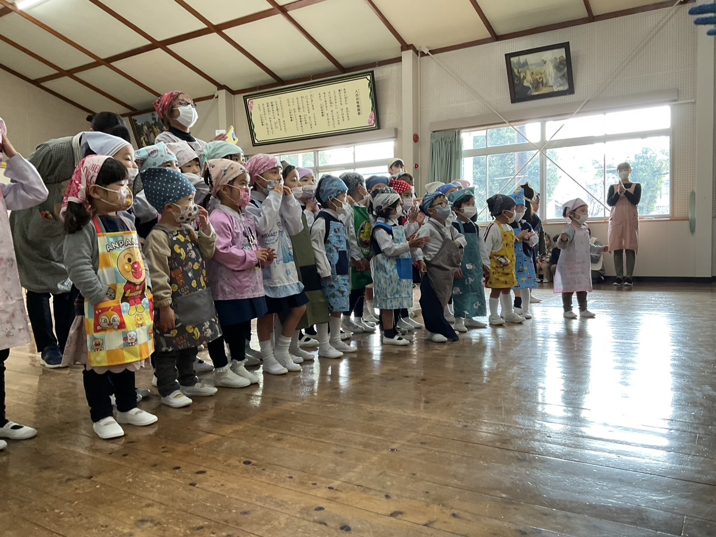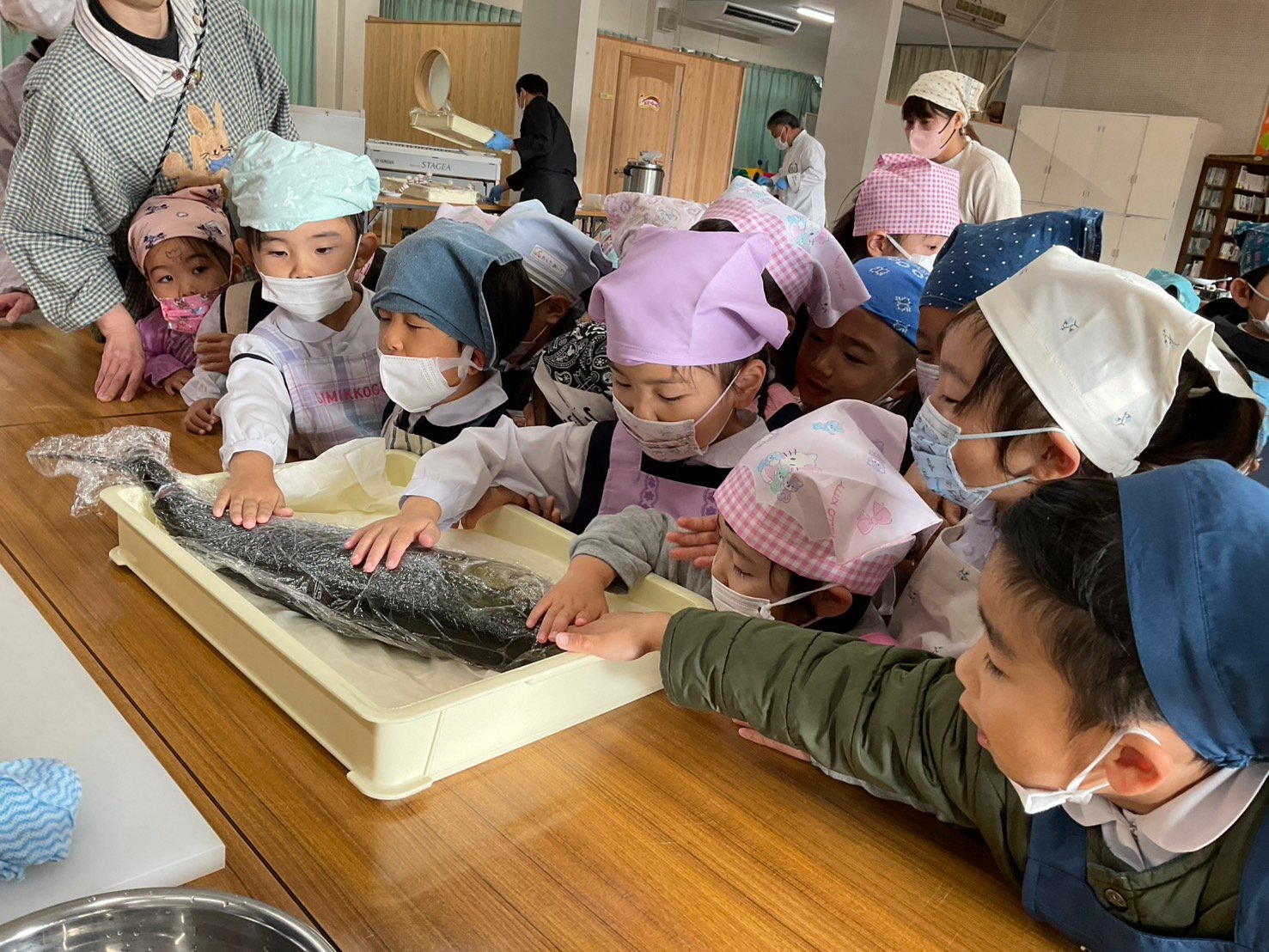 12月17日水曜日、今日は待ちに待ったクッキングの日✨司厨士協会人吉支部の皆さまが来てくださり、豪華なランチを提供してくださいました。まずは、新鮮カンパチの解体ショー。子どもたちも釘付けでした👀
