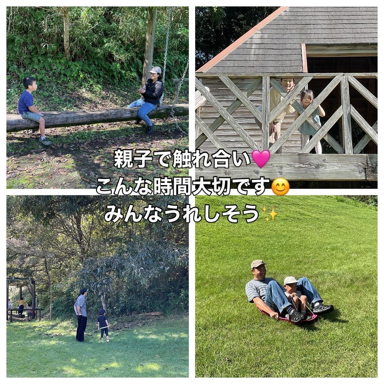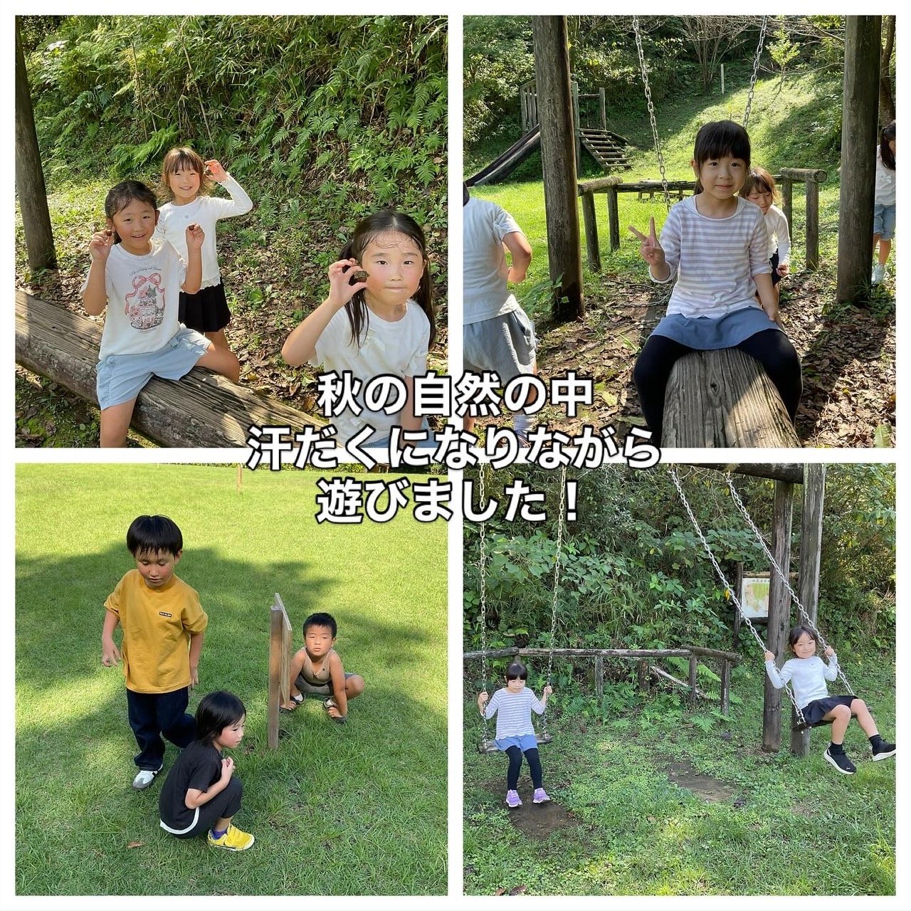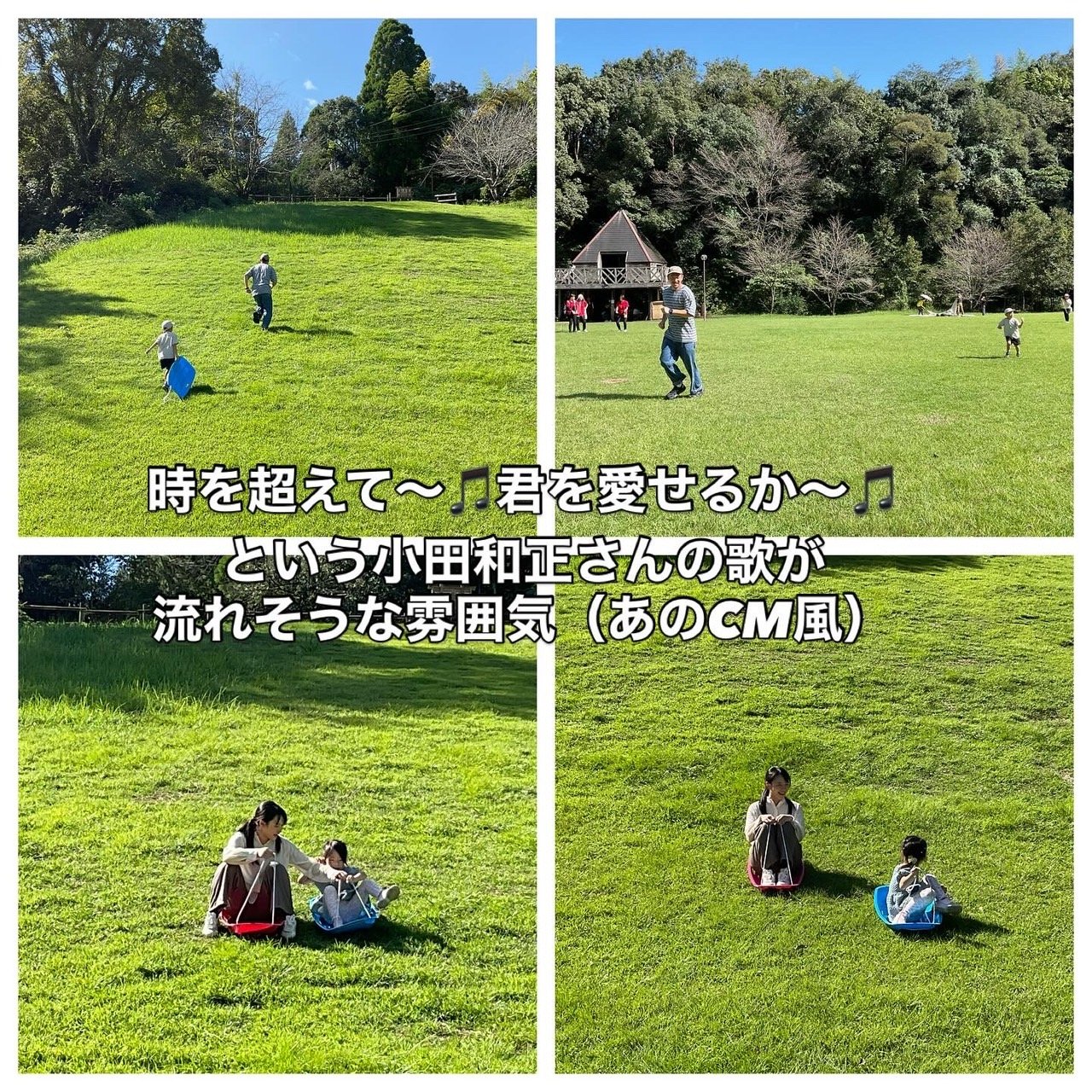 さわやかな風吹く広場でたくさん走ったり草スキーをしたり、汗だくで、しまいには肌着一丁?!(笑)