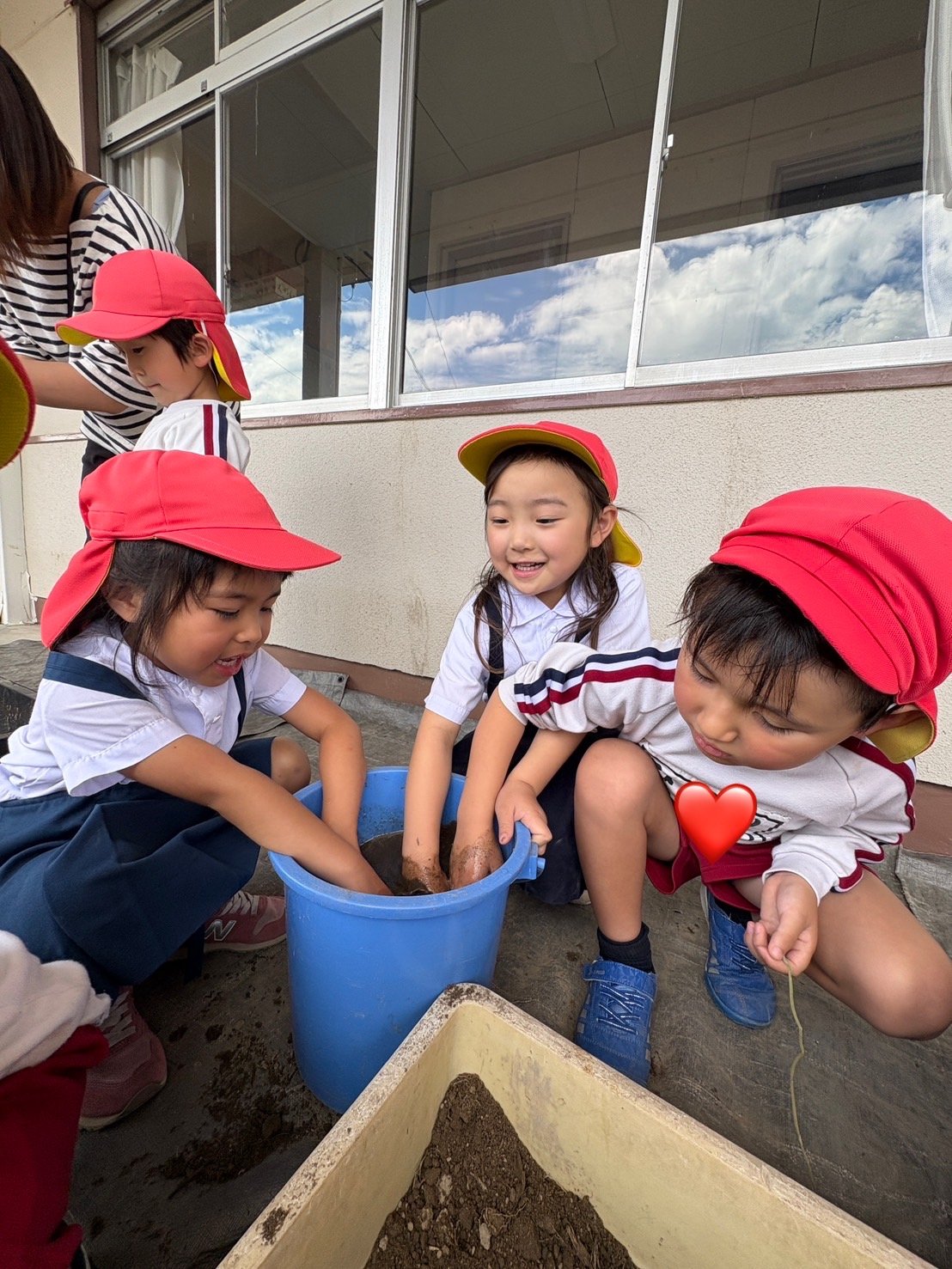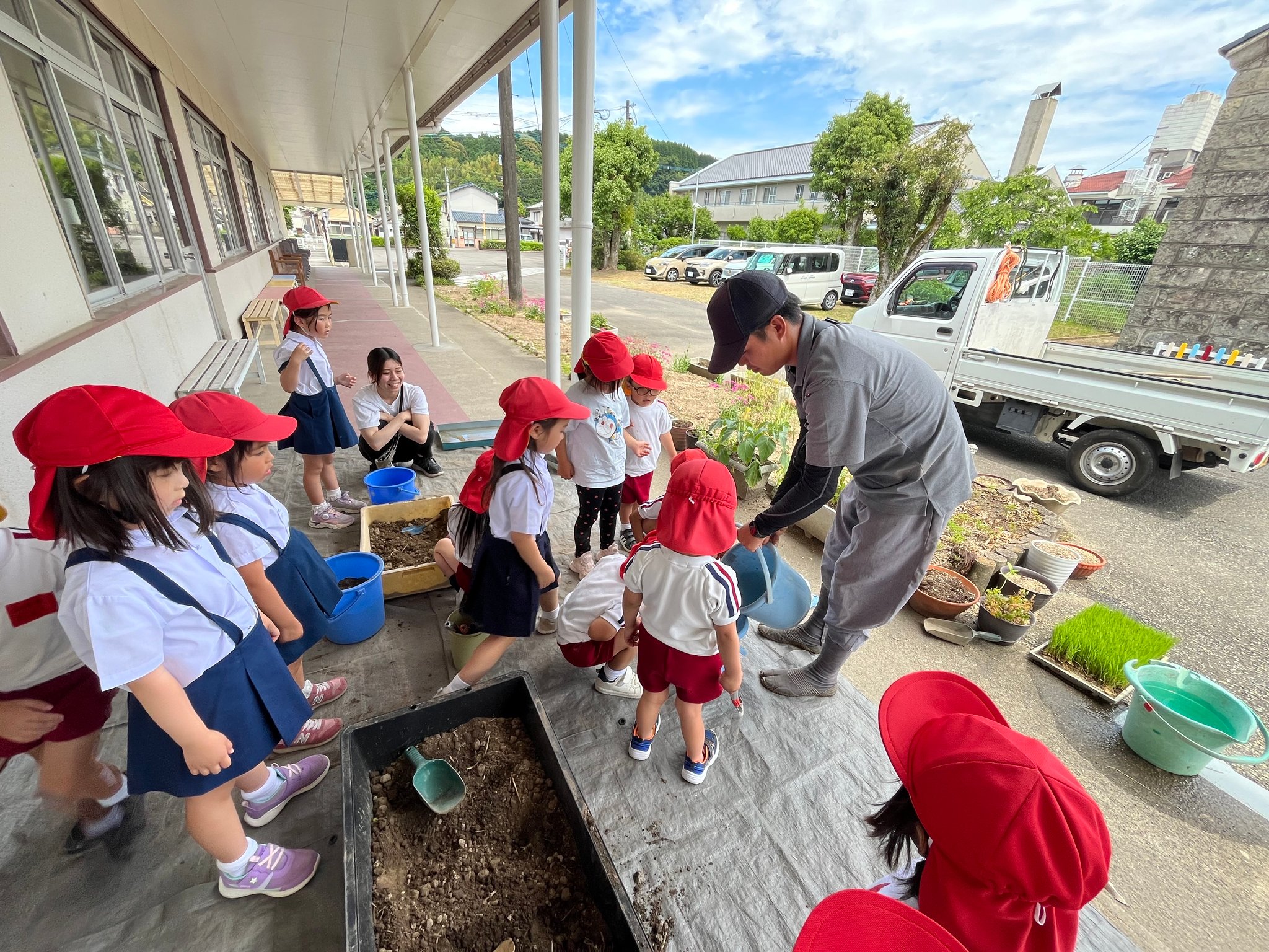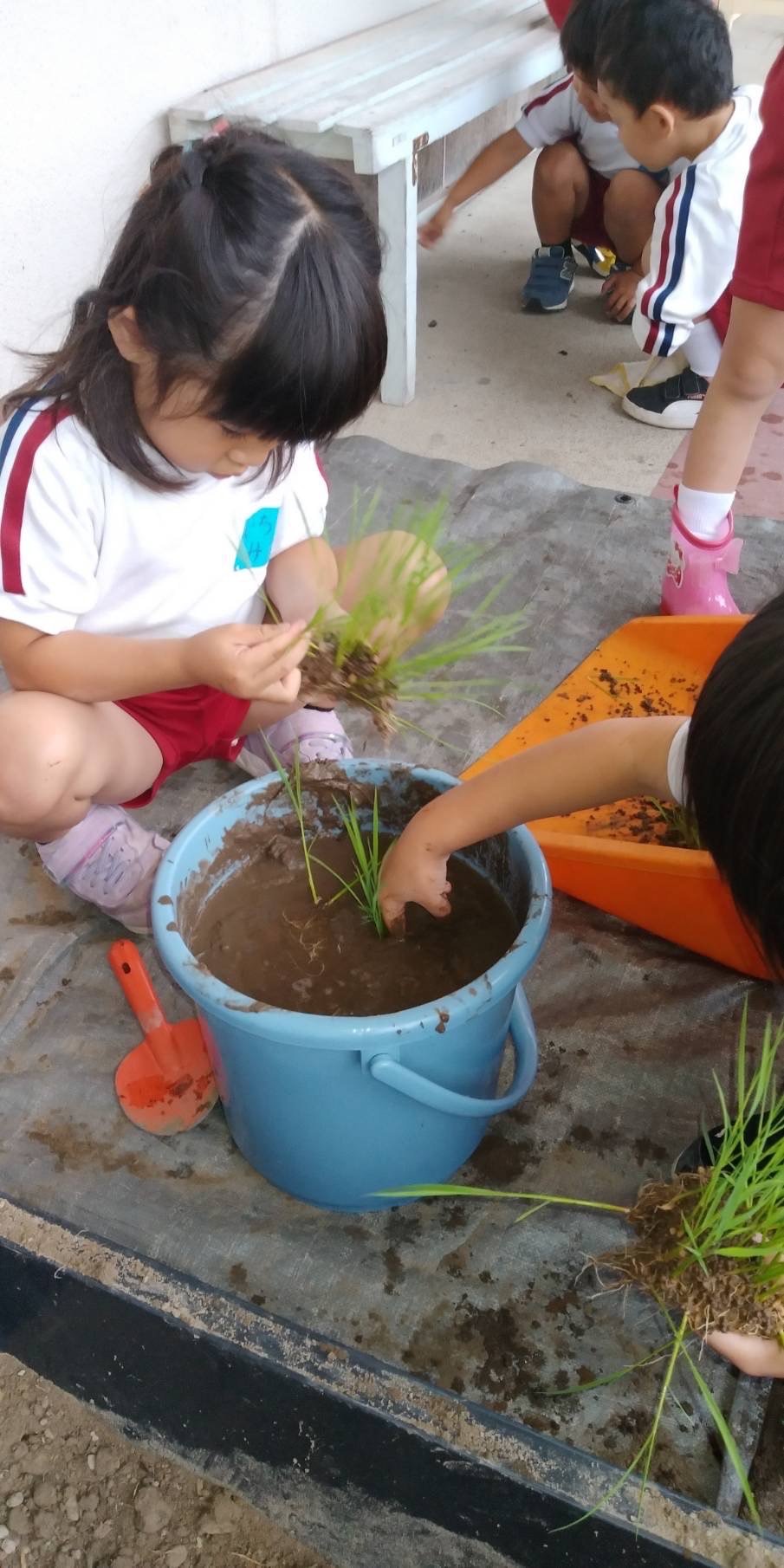 本日午後、ひかり組がバケツ苗植え替えに挑戦!