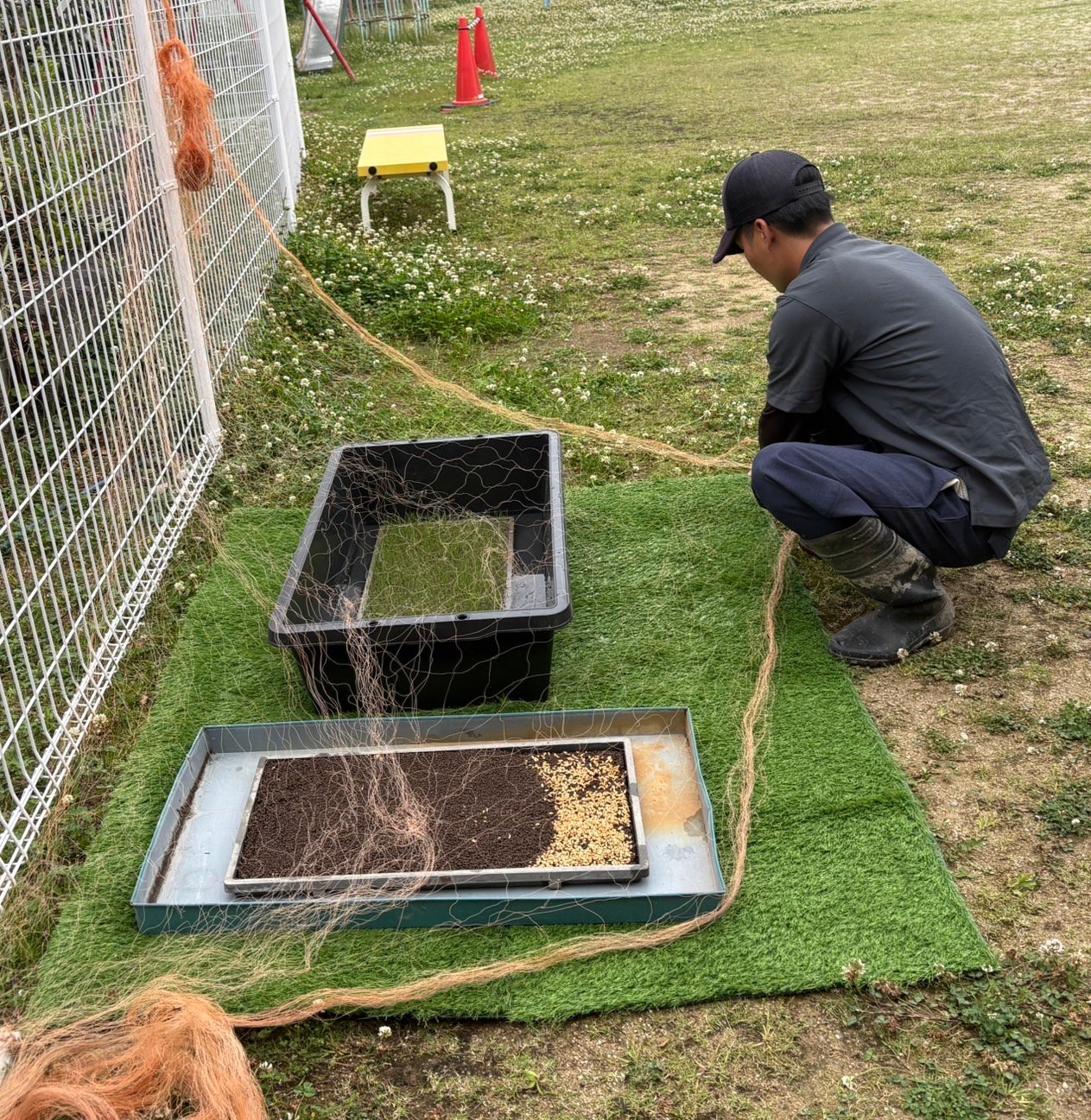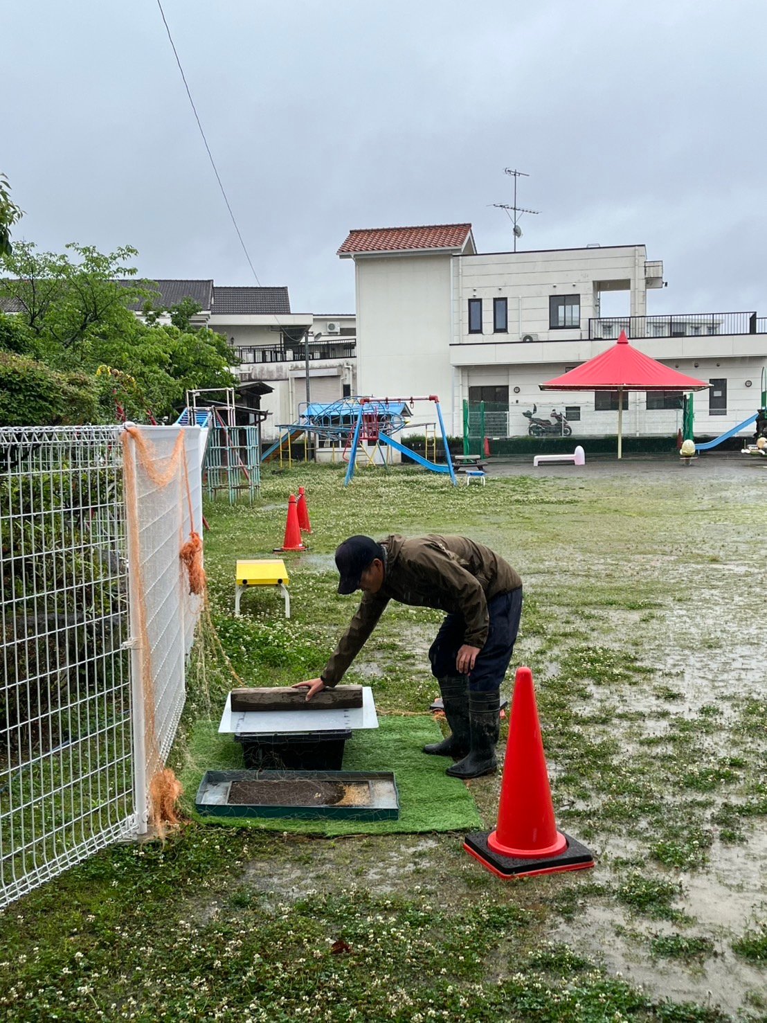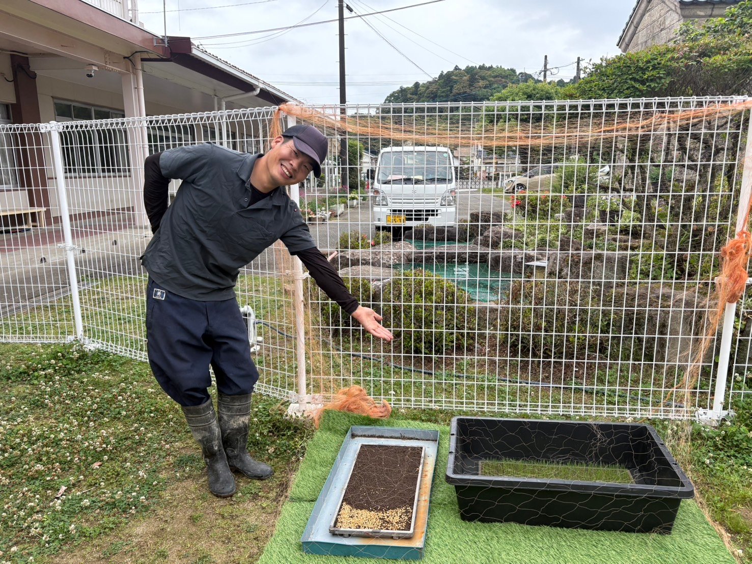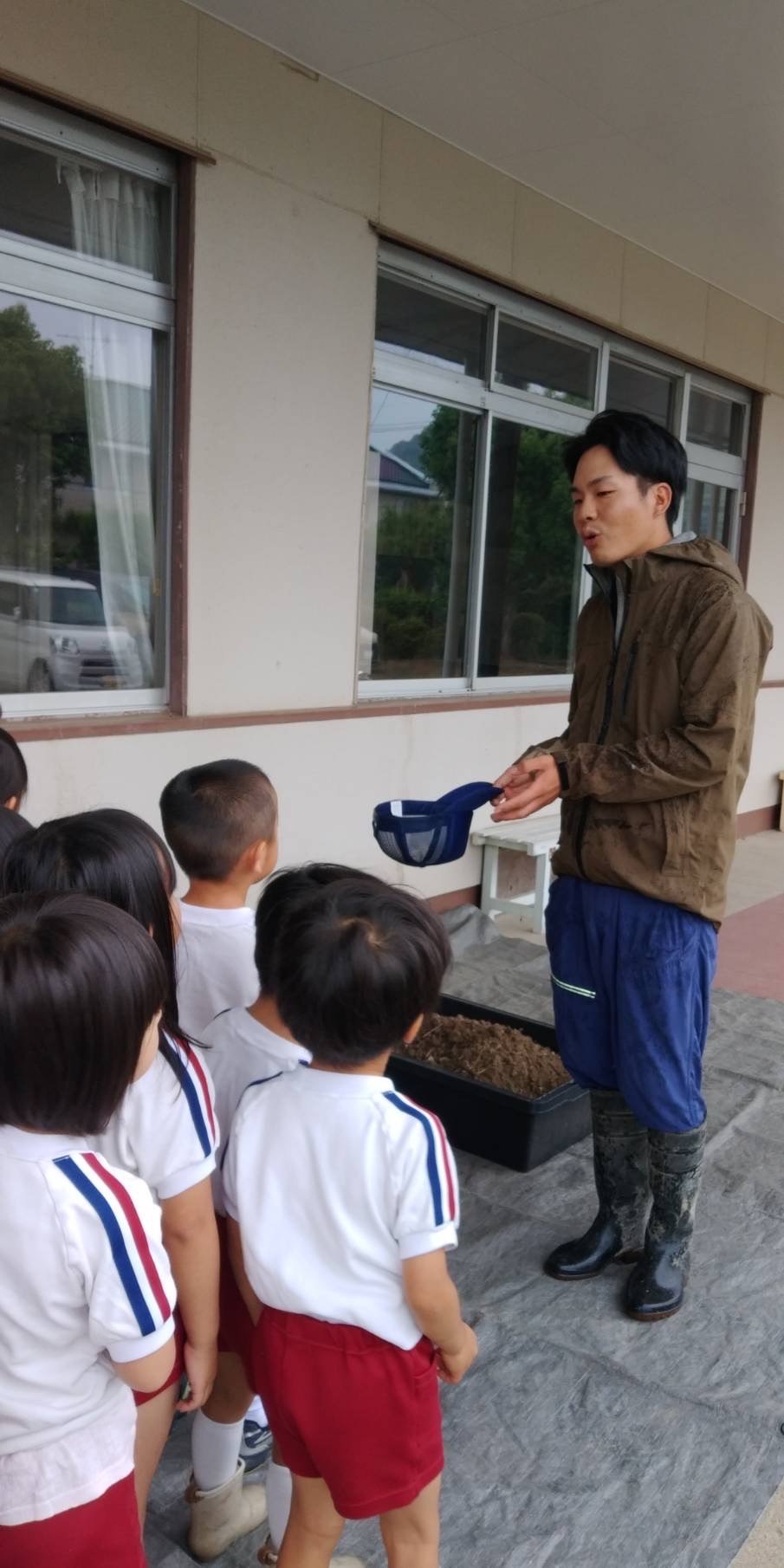 山下様のご厚意により、バケツ稲を始めます。その前に稲が大きくなる所を子どもたちが見れるように準備してくださり