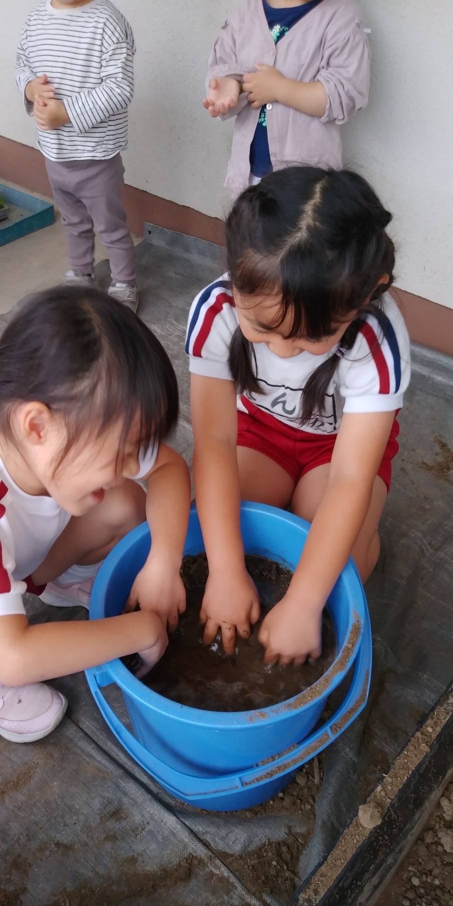 どろどろの土をもにゅもにゅと揉んでとても楽しそう♡