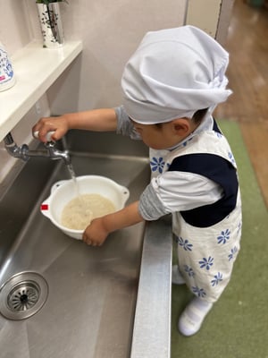今日からお米を洗って炊きます。