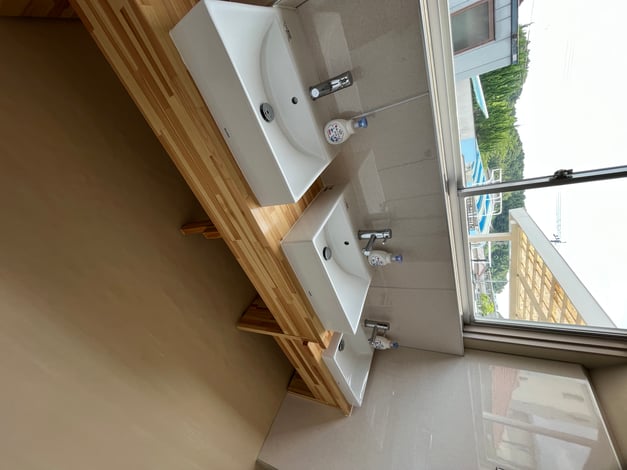 手洗い場は大人用2,園児用1と小さいお子様も手を洗える高さです。