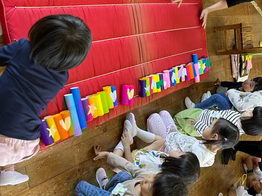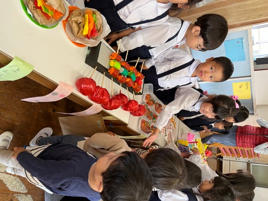 10月17日(火)幼稚園の講堂がお店屋さんになりました!この日に向け、てんし組は「おまつりやさん」ひかり組は「おもちゃやさん」ほし組は「そうがんきょうやさん」の商品を作ってきました。